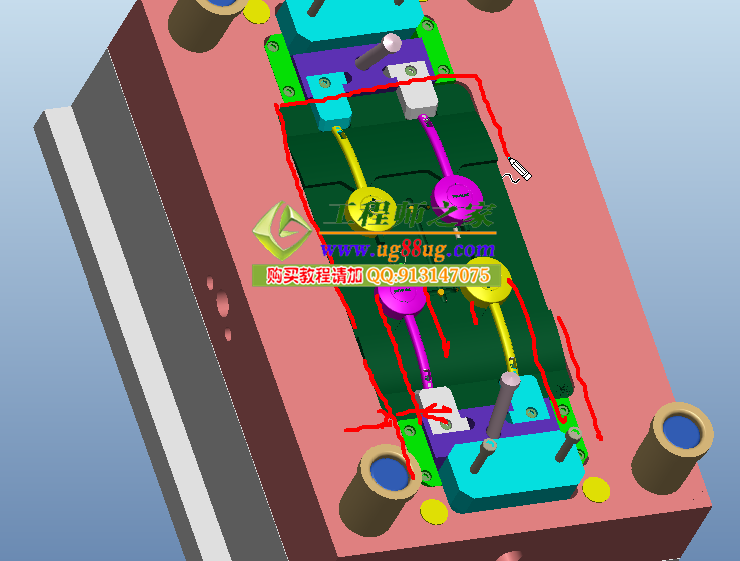 &本款产品部分模具结构图& ——非平面类斜行位抽芯模具结构,与产品结构并讲!
