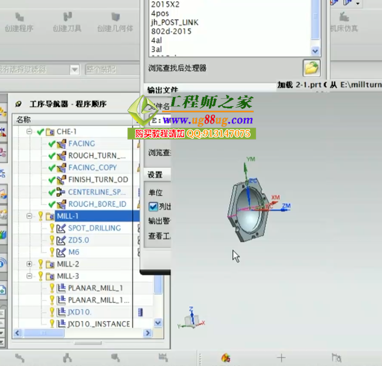 产品名称:UG8.0车铣复合编程视频教程+车铣复合后处理制作教程