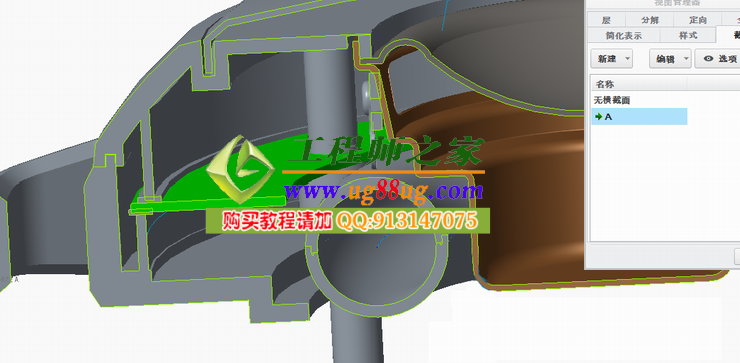 第21课底壳绕线弧面曲面技巧:外部造型曲面与模具的关联-->外部造型曲面与结构的关联-->曲面合并